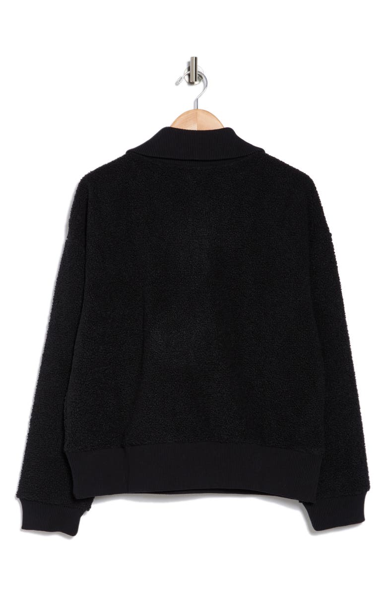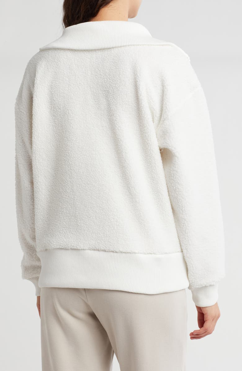 Layer on this cozy faux-shearling pullover constructed with a half-zip closure and soft ribbed trim.