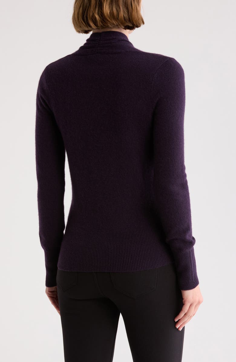 Embrace cozy elegance styling this cashmere sweater that features a surplice V-neckline.