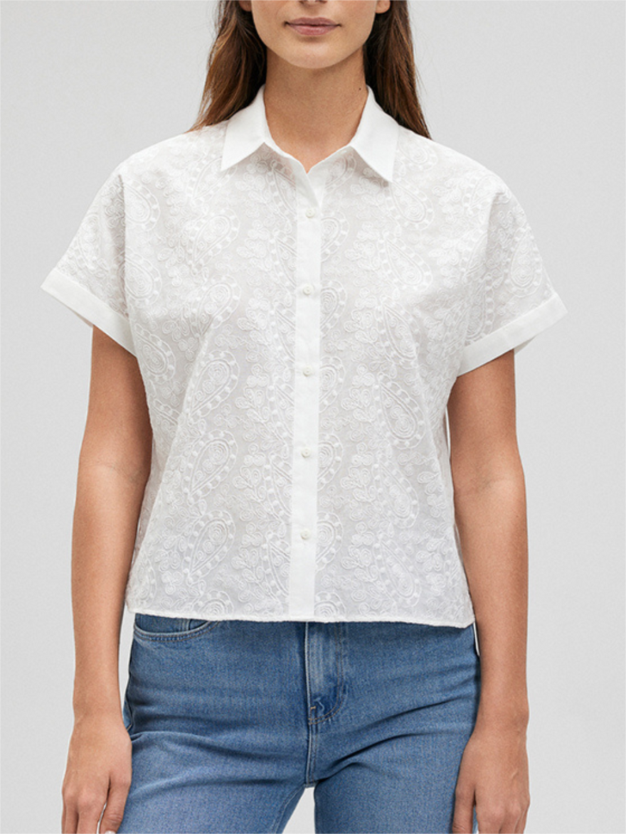 Dainty embroidery detailing gives this short sleeve button up a refined feel. Perfect for summer days and nights, this shirt is elegant and simple. Made with 100% cotton, it’s designed to keep you cool and comfortable.