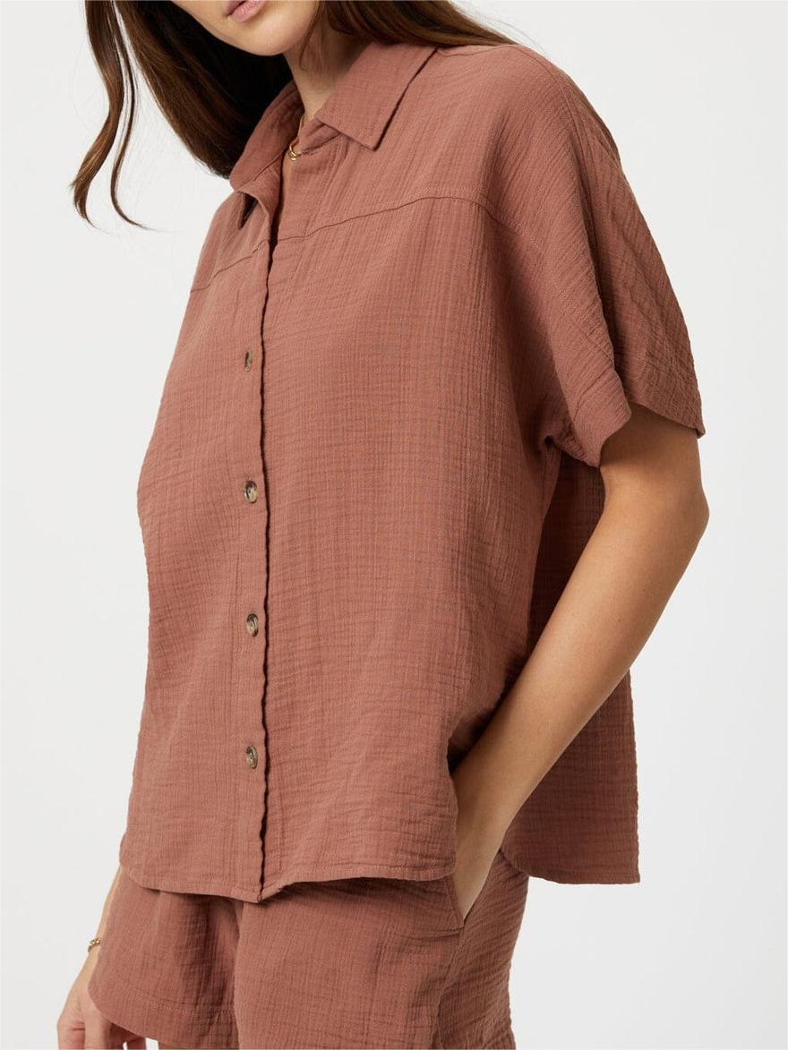 A classic-fit short-sleeve button-up shirt with a spread collar and tailored hems.